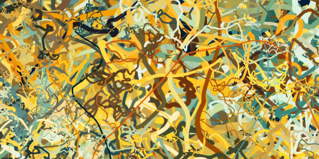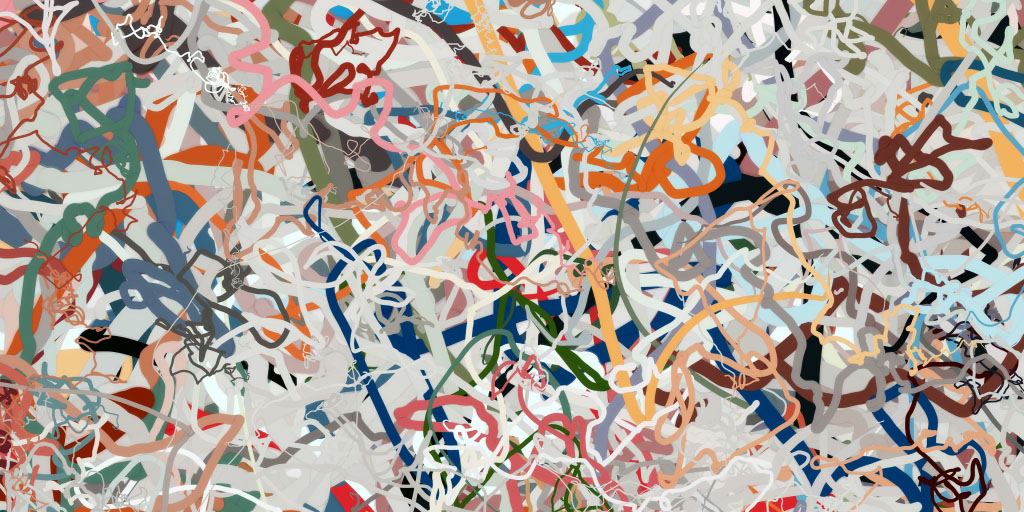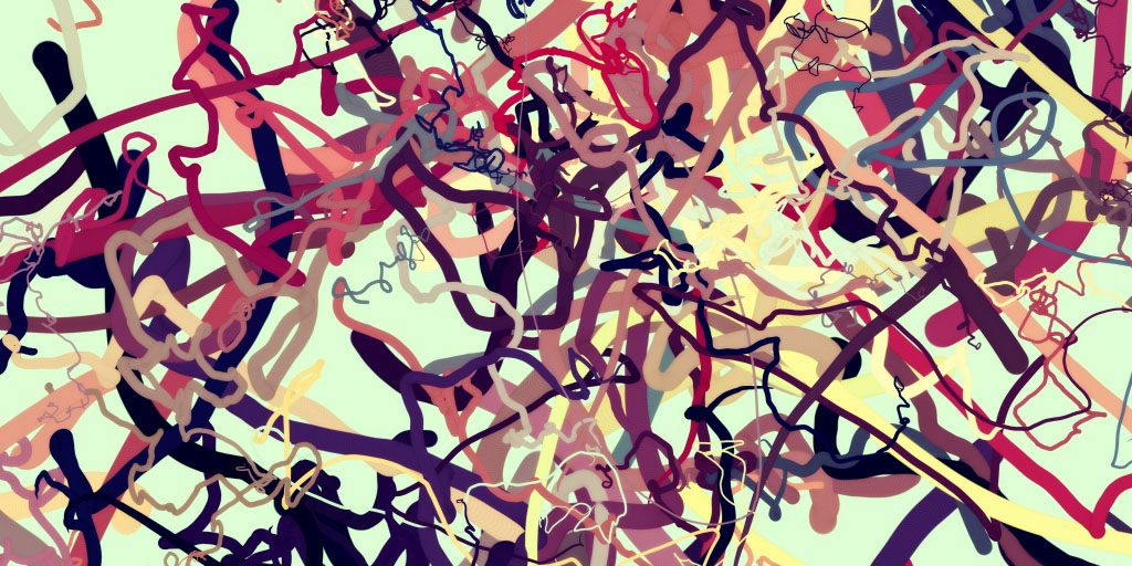 Pinceaux Automisés se compose d'images et une vidéo d'un de mes projets de programmation. Le programme crée autour d'un millier d'agents autonomes. Un agent autonome est tout ce qui peut se déplacer par lui-même, sans apport extérieur. Ce programme retrace leur parcours autour de la fenêtre avec une traînée de couleur, puis délivre une image. P> La couleur de ces sentiers, et les règles pour le mouvement de chacun des agents est randomisés après un certain nombre de cadres. Les couleurs sont tirées de 12 palettes j'ai créé, et stockées sous forme de petites images. Lorsque le programme démarre, ou redémarre, il choisit au hasard une de ces images, et prend la valeur de la couleur d'un pixel pour chacun des agents.