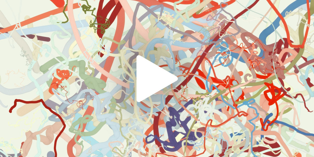 Pinceaux Automisés se compose d'images et une vidéo d'un de mes projets de programmation. Le programme crée autour d'un millier d'agents autonomes. Un agent autonome est tout ce qui peut se déplacer par lui-même, sans apport extérieur. Ce programme retrace leur parcours autour de la fenêtre avec une traînée de couleur, puis délivre une image. P> La couleur de ces sentiers, et les règles pour le mouvement de chacun des agents est randomisés après un certain nombre de cadres. Les couleurs sont tirées de 12 palettes j'ai créé, et stockées sous forme de petites images. Lorsque le programme démarre, ou redémarre, il choisit au hasard une de ces images, et prend la valeur de la couleur d'un pixel pour chacun des agents.