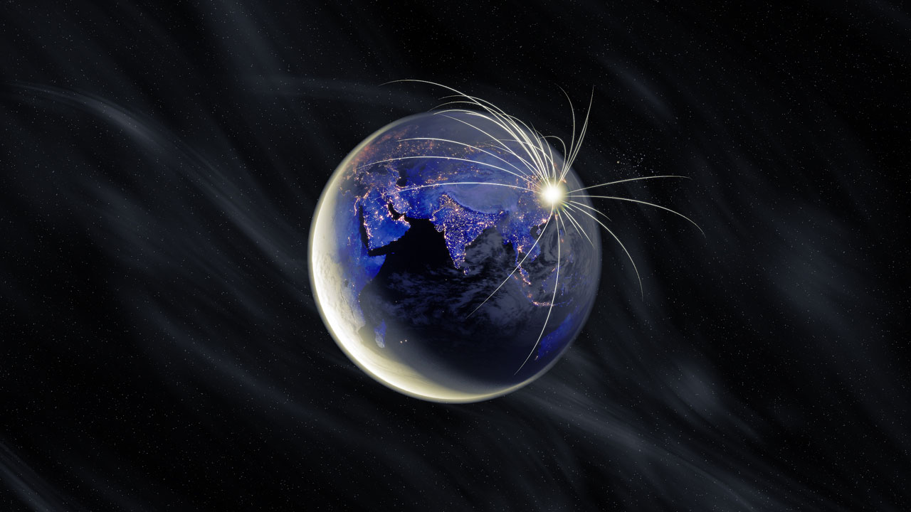 La terre, l'atmosphère, l'explosion, et l'éclairage sont tous rendus 3D photoréalistes. Si vous regardez d'assez près, vous pouvez même voir les bosses sur la surface du globe. Il est entièrement modélisé, et pas seulement une sphère. p>